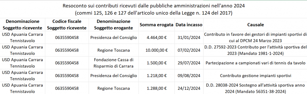 Contributi ricevuti nell'anno solare 2024